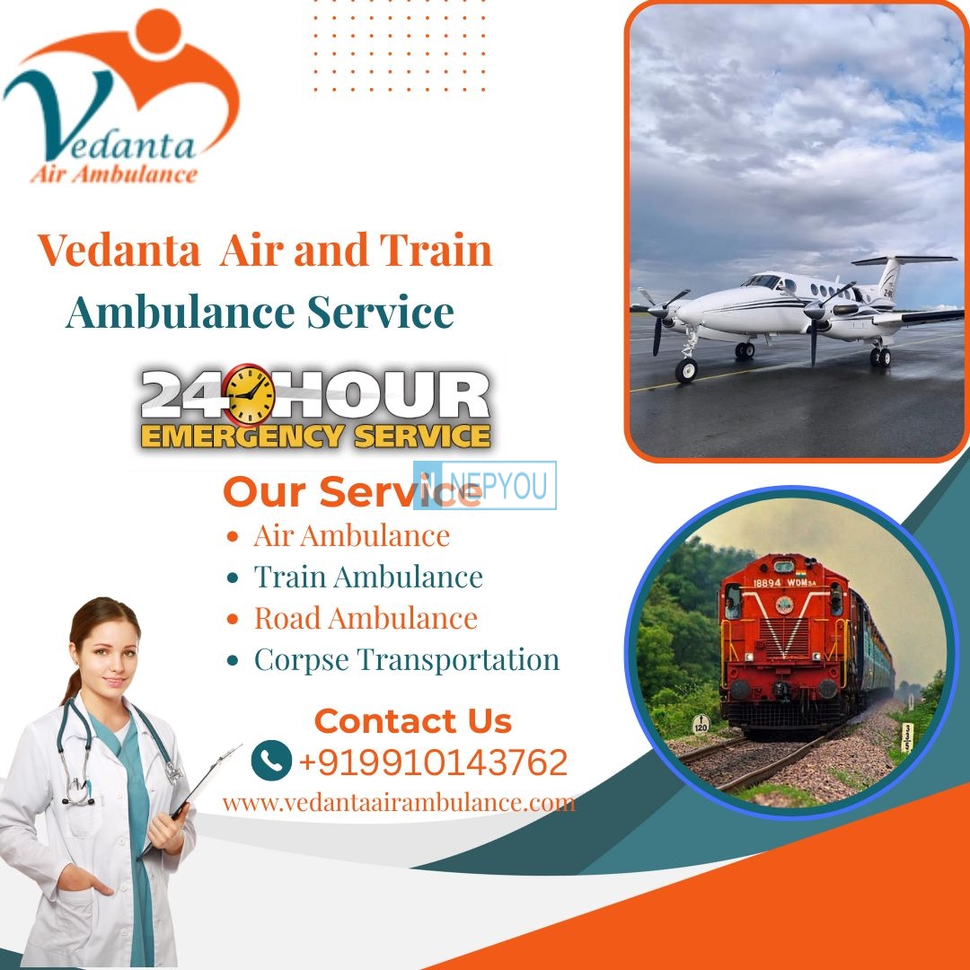 Vedanta Air Ambulance service in Patna provides professional doctors and nursing staff to ensure patients receive quality medical care during the transfer. This air ambulance is equipped with advanced medical equipment to provide immediate care and reach patients quickly.